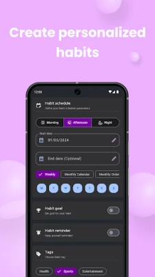 • Weekly, Monthly, Yearly Schedules: Customize habits for specific days, weeks, or months.