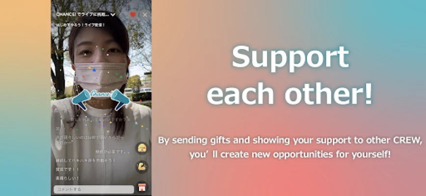 You can show support to other CREW by sending CHANCE! points or shopping live. Create new opportunities and value for yourself and others!