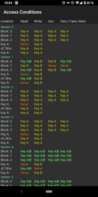 • Display the MIFARE Classic Access Conditions as a table