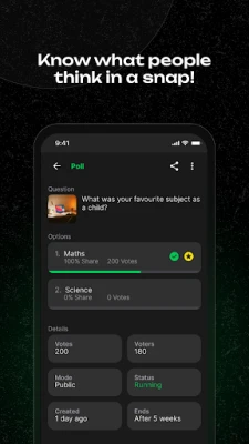 Share with Anyone: Share your poll via social media, email, or a direct link. The app makes it easy to gather responses from a wide range of people, anywhere in the world.