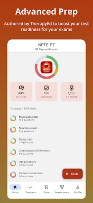 The TherapyEd Mobile App is your best streamlined mobile companion to help you pass your NPTE-PT, NPTE-PTA, and SLP PRAXIS exams. Each Study-Pack contains hundreds of comprehensive practice questions with detailed explanations integrated to the TherapyEd review & study guides. You can generate custom study sessions based on your mastery and filter by core domains, categories, and reasoning strategies. Additionally, you can track your progress and know where to improve next in real-time as you answer questions.